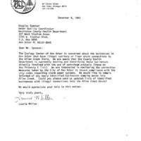 Laurie Miller, Letter to Washtenaw Water Quality Coordinator, December 9, 1983, Folder Allen Creek Drain Pollution 1983, Box 6, Ecology Center of Ann Arbor Records, Bentley Historical Library, University of Michigan