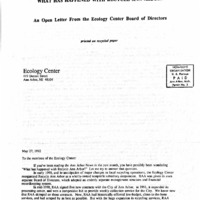 RAA open letter 1992. Folder: Flyers, Pamphlets, and Mailings 1989-1996 . Box 16. Ecology Center of Ann Arbor records 1969-2010. Bentley Historical Library. University of Michigan.